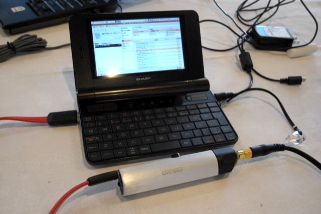 写真奥のパームトップと並べても違和感のない小ささ