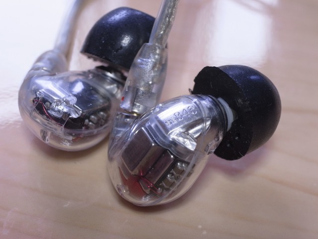 SE846。クリア筐体にドライバーやローパスフィルターがぎっしり詰め込まれている