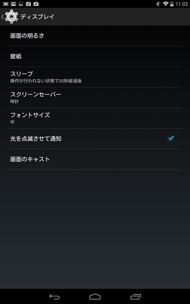 設定アプリからディスプレイの設定メニューにも画面のキャストが並ぶ