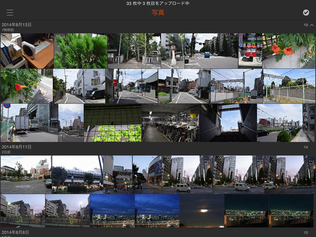 写真のリストを一覧表示する「イベント」ビュー