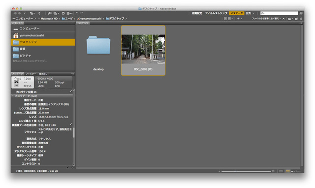 ダウンロードした画像ファイルにはEXIFデータも付いてくる