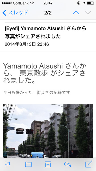 シェアされた画像がメールで送られてくる。単体の画像、アルバム単位でのシェアができる