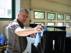 写真右がウィーンアコースティックスの創設者であり開発・設計の総責任者でもあるPeter Gansterer(ピーター・ガンシュテラー)氏。左が筆者