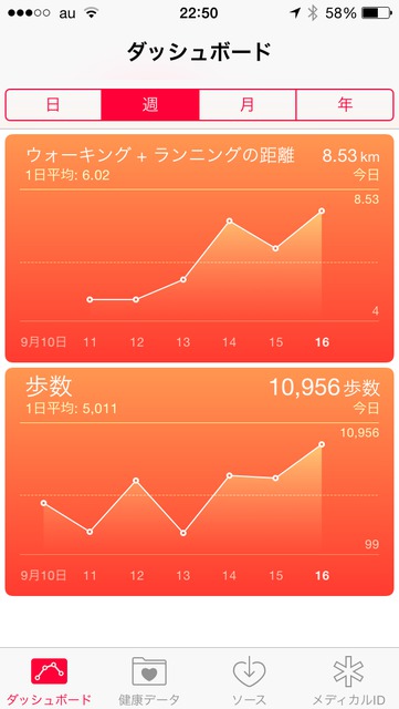 新アプリ「ヘルスケア」。運動量を低消費電力で測定できるコプロセッサ「M7」を搭載した端末であれば、万歩計代わりに利用できる