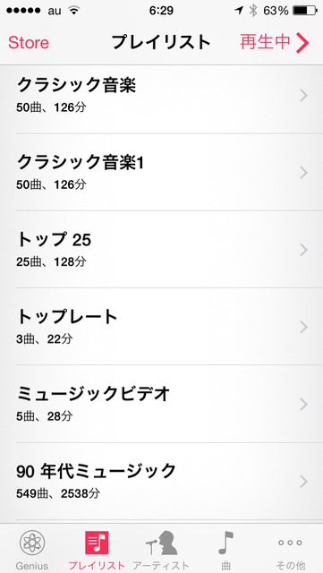 「ミュージック」に大きな変化はないが、プレイリスト一覧で総再生時間を確認できるようになるなど使い勝手の部分が見直されている