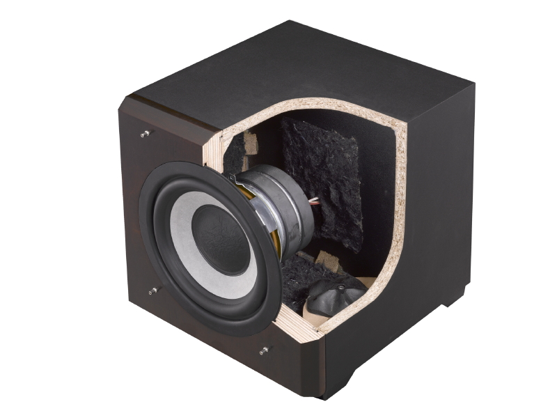「5弦コントラバスの最低音である32Hzの十分な再生とパイプオルガンの16Hzも感じさせる能力を備えることを目指して設計されたCW200A。ウーファーはBKPパルプとケブラーの混抄による高剛性振動板を9000ガウスを超える強力な磁気回路と2層ボイスコイルで駆動し、90dB/wmの高能率を確保する