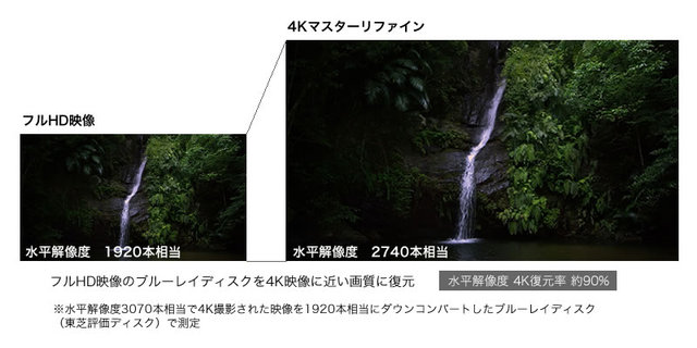 「4Kマスターリファイン」は4K撮影された映像をダウンコンバートしたBDソフトのほか、地デジやBSデジタル放送など、さまざまな映像にも効果を発揮