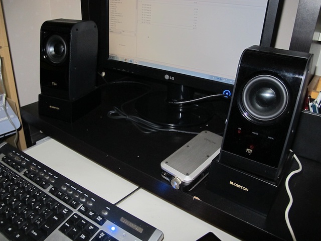 手持ちのUSB入力内蔵アクティブスピーカーにアナログ接続してのサウンドも確かめた