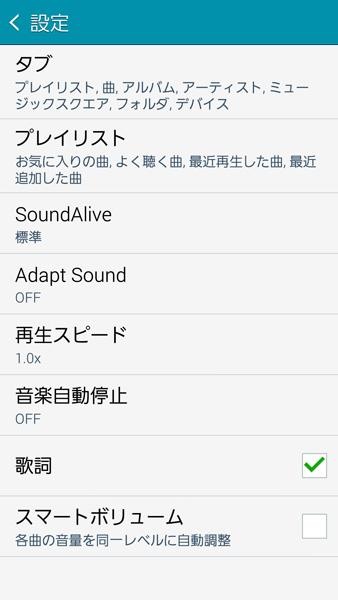 音楽再生の設定メニュー。K2HDは搭載されていない