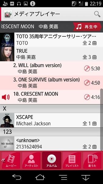 XperiaやGALAXYに比べると楽曲リストが簡素だが、操作性は悪くない