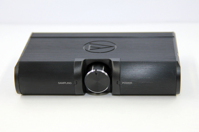 筺体のセンター部にボリュームを配置するデザインを採用。付属のケーブルやバンドを使って、ポータブルプレーヤーと組み合わせての持ち運びも簡単だ
