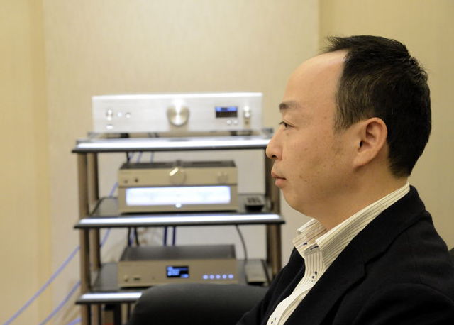 様々な音源でプレミアムシステムの実力をくわしくチェックする鴻池氏