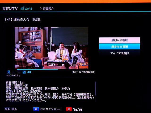 作品の詳細紹介画面。ここから再生開始を選んで実際に画面が表示されるまでは5〜6秒程度かかったがそれほど待たされている印象はうけなかった