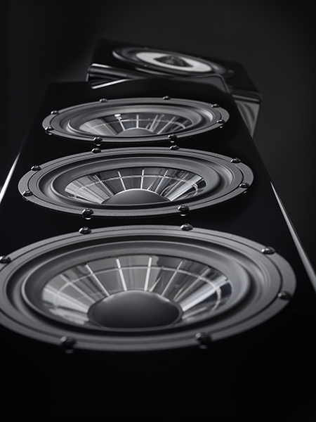 独自に開発・デザインされたウーファーユニット。ミッドウーハーと同じく蜘蛛の巣状のリブが特徴。高い制動性により、パワーとスピード、繊細さを兼ね備えている