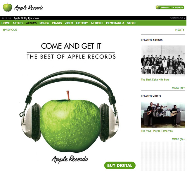 アップル・コアが運営するApple Recordsのホームページ
