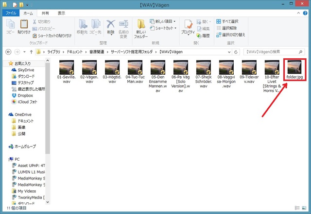 赤線で示したようにアルバムアートのJPEGデータをフォルダにいれておく
