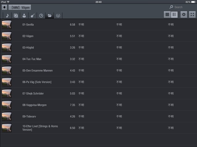 <3>アートワークは表示されているものの、各情報は「不明」。曲名にもファイル名が表示されている