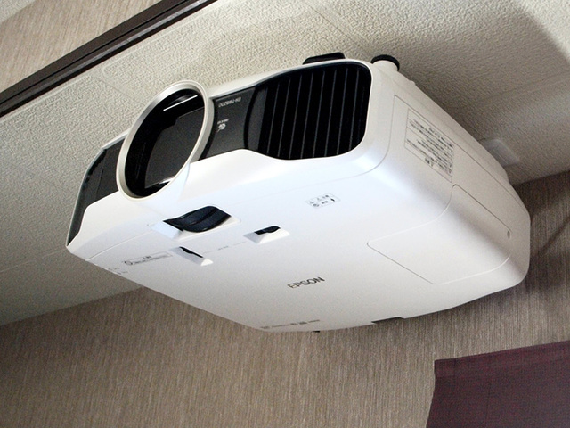 プロジェクターはエプソン「EH-TW8200」。もともとシアター専用室ではないため迷光があるが、明るさが特徴のエプソンプロジェクターを使用することで綺麗な投写を実現している