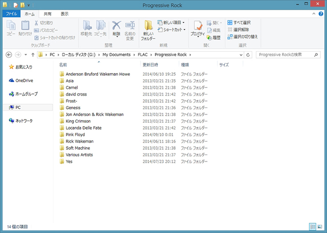 ジャンルフォルダの「Progressive Rock」に入ると、該当するアーティストごとにフォルダが並ぶ