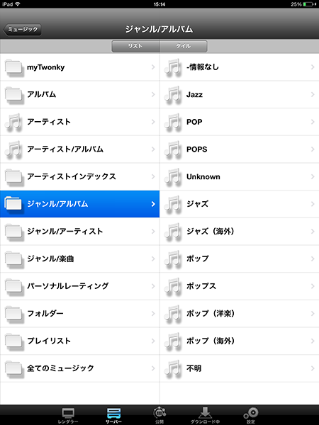 「ジャンル/アルバム」の中に、例えばジャズなら「Jazz」「ジャズ」「ジャズ(海外」が混在。これだとお目当てのアルバムにたどり着くのは難しい