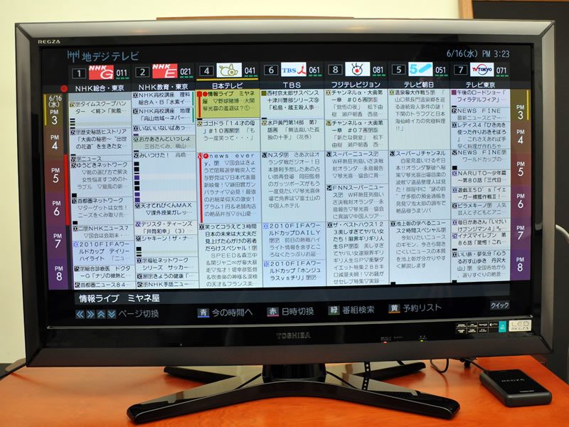 EPGから録画予約。予約した番組には赤い帯で目印がつく
