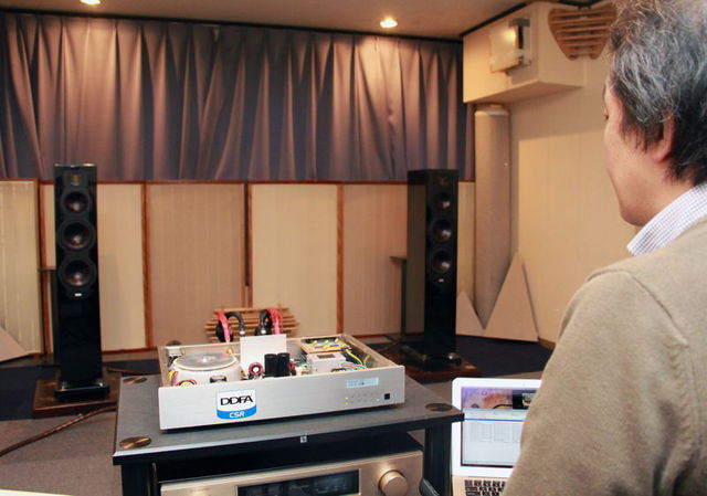 DDFA試作アンプの音質をチェックし、DDFAのポテンシャルを確かめる山之内氏