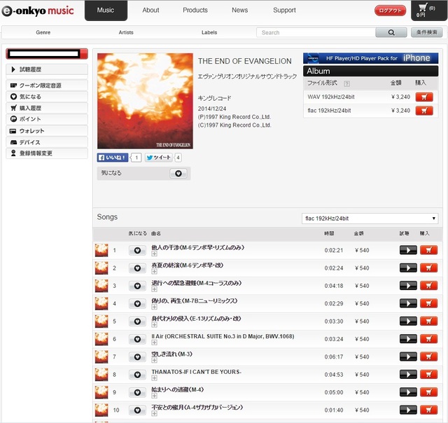 e-onkyo musicでは、音源を購入する際にファイル形式をWAVやFLACから選ぶことができる