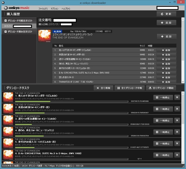 しかし、やはりダウンローダーを使ったほうが便利。自動で全楽曲をダウンロードしてくれる