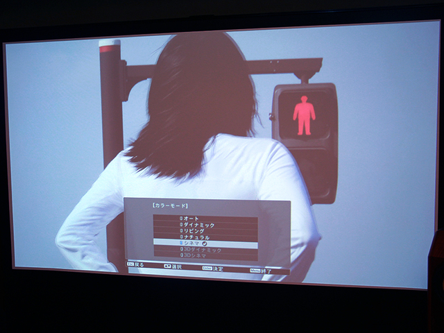 自主制作映画を投写。画質調整機能も試す