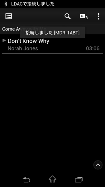 LDAC対応機器を接続すると、ステータスバーに「LDACで接続しました」という表示が1〜2秒ほど表示される。現状の接続状態がLDACかSBCなのかが常時わかるようアイコンなどで表示されればより快適に使えるようになるのでは