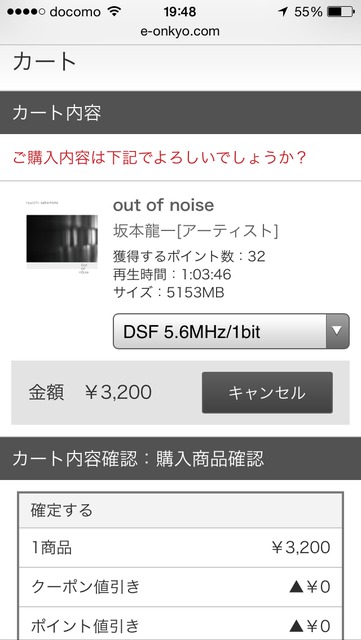 (2)今回は坂本龍一「out of noise」(DSD 5.6MHz)を購入してみた
