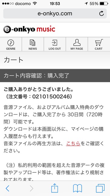 (3)必要な情報を入力して、購入が完了。後述するようにiOSでは端末からのダウンロードはできないので注意