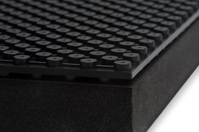 ダンパーを持つ3層構造のPADと、高密度ポリエチレンによるBOARDを組み合わせた4層構造を採用