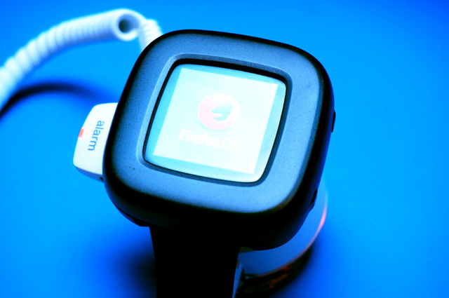 MozillaがMWC 2015の会場に出展したスマートウォッチへのFirefox OS展開のイメージ試作機