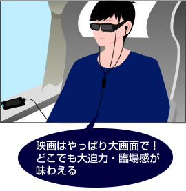 新幹線や飛行機の中などの移動中や、外出先でまったりしながら録画済みコンテンツを楽しめます。地上波放送の映画を録画して持ち出せば、移動中に大画面で映画が楽しめます