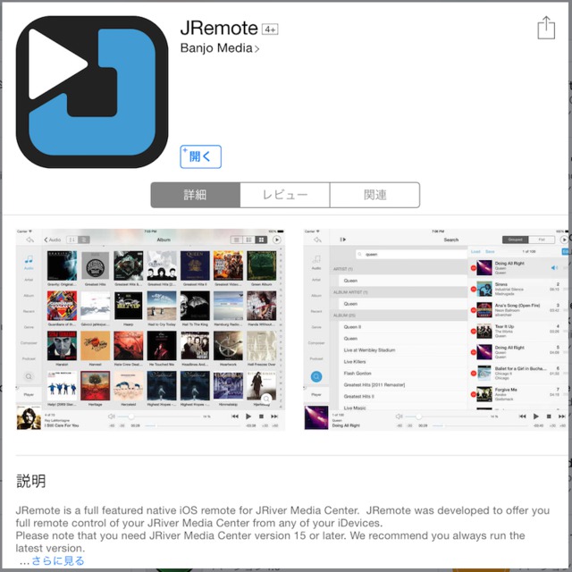 JRiver Media Centerをコントロールするためのアプリ「JRemote」
