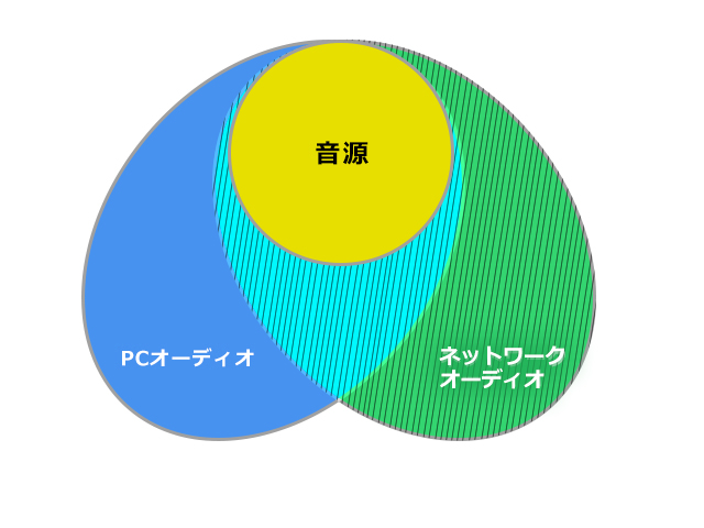 右側楕円の斜線で示した部分が、筆者の考える「ネットワークオーディオ」の領域だ