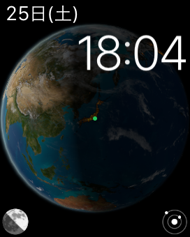 文字盤のフェイスを「アストロノミー」に変更したところ。iPhoneと通信せず自律的に動作するネイティブWatchアプリだ