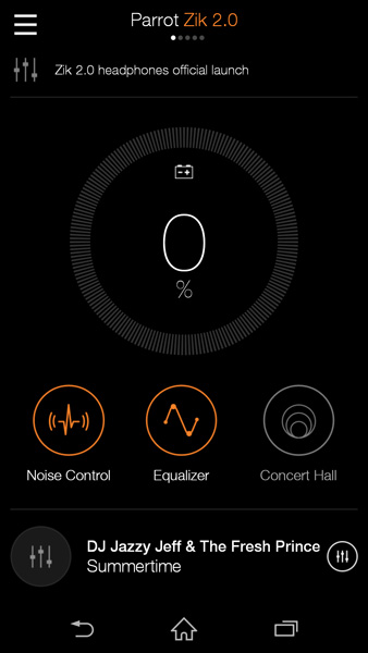 Android版「Parrot Zik 2.0」アプリのメイン画面