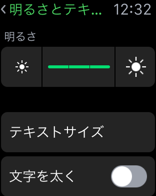 画面の明るさ設定。テキストのサイズや太さも変更できる