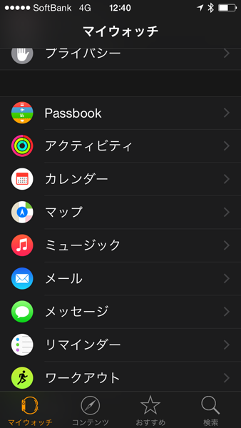 スマホのApple Watchアプリで「マイウォッチ」の一覧から「ミュージック」を選択