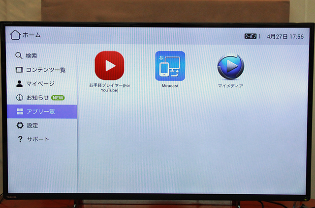 YouTube視聴やスマホ画面のミラーリングなども可能なアプリを用意している