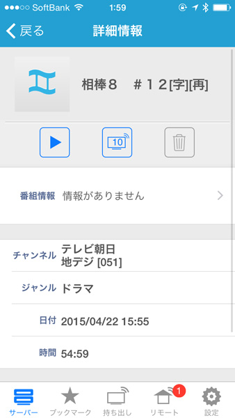 持ち出したい番組を選んで上部中央のディスプレイの中にダビング可能回数の「10」と記載されたアイコンをタップする