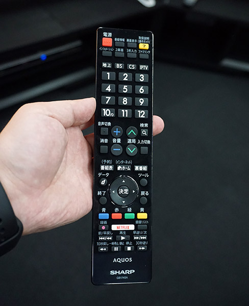 本機のリモコン。Netflixボタンも備える