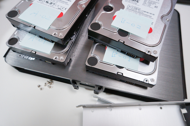組み込み用と換装用で、ウエスタンデジタルのNAS用HDD「WD RED」を4基用意した