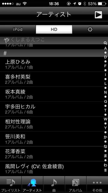 HF Playerのライブラリブラウズの画面はこんな感じ
