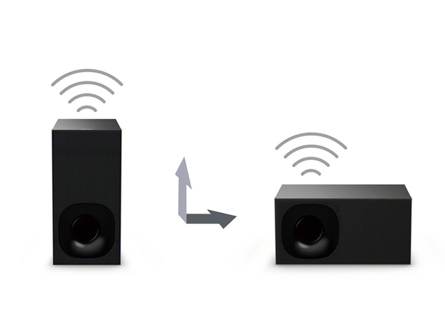 ワイヤレスサブウーファーは縦位置でも横位置も設置可能