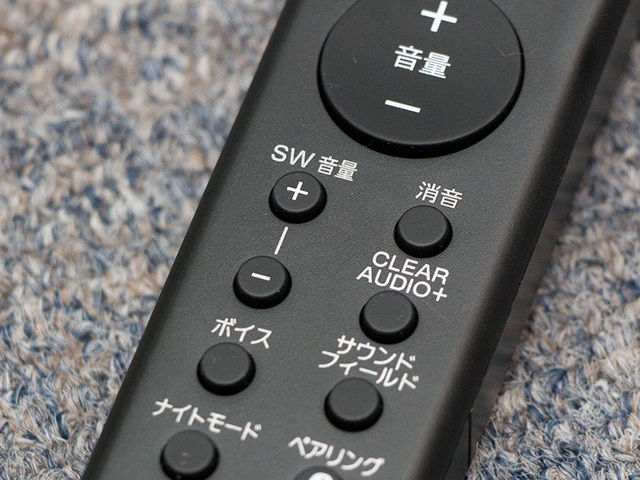 サブウーファーの音量だけを調整できる「SW音量」ボタンをリモコンに装備