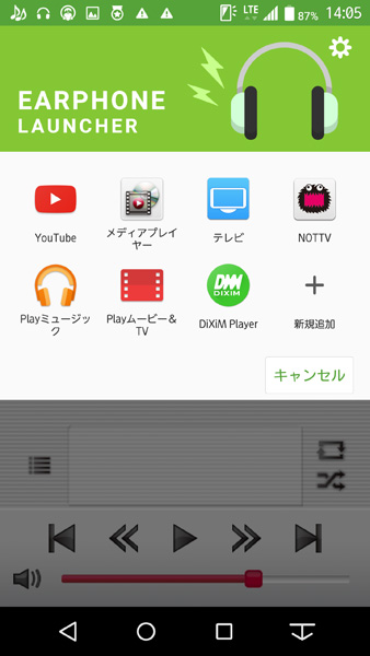 イヤホン・ヘッドホンをつなぐと表示される「イヤホンランチャー」が便利