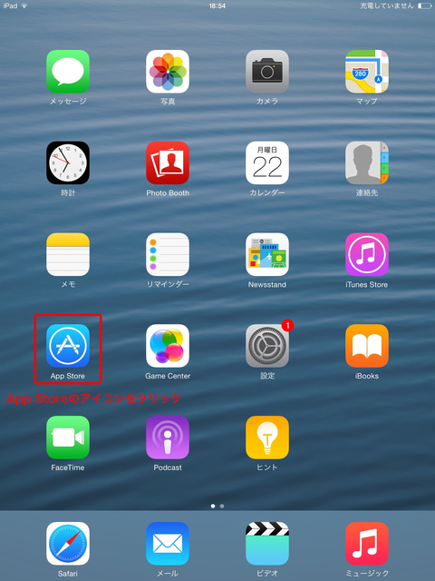 【1】iPadのホーム画面上にあるApp Storeアイコンをクリック